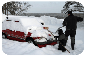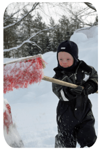 Vi hjälptes åt att skotta fram snökojan,