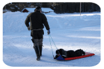 pulkbacke, massor med snö, snökoja