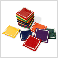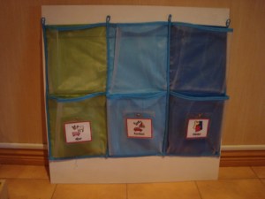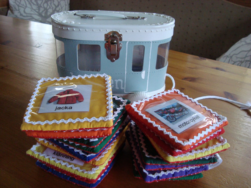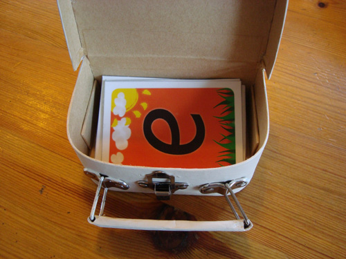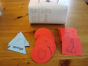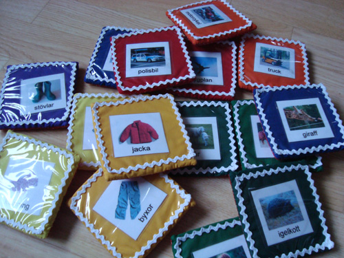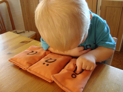 ärtpåsar och träbokstäver.