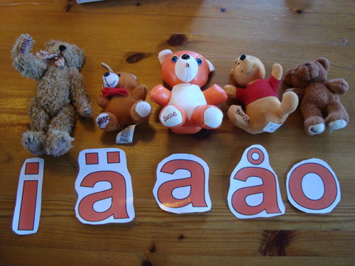 ….nu har han bokstäverna ”b, d, t, v, l” som han får ljuda