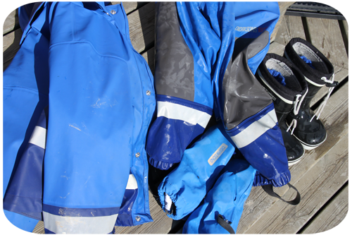 regnkläder på sig och heter Max…