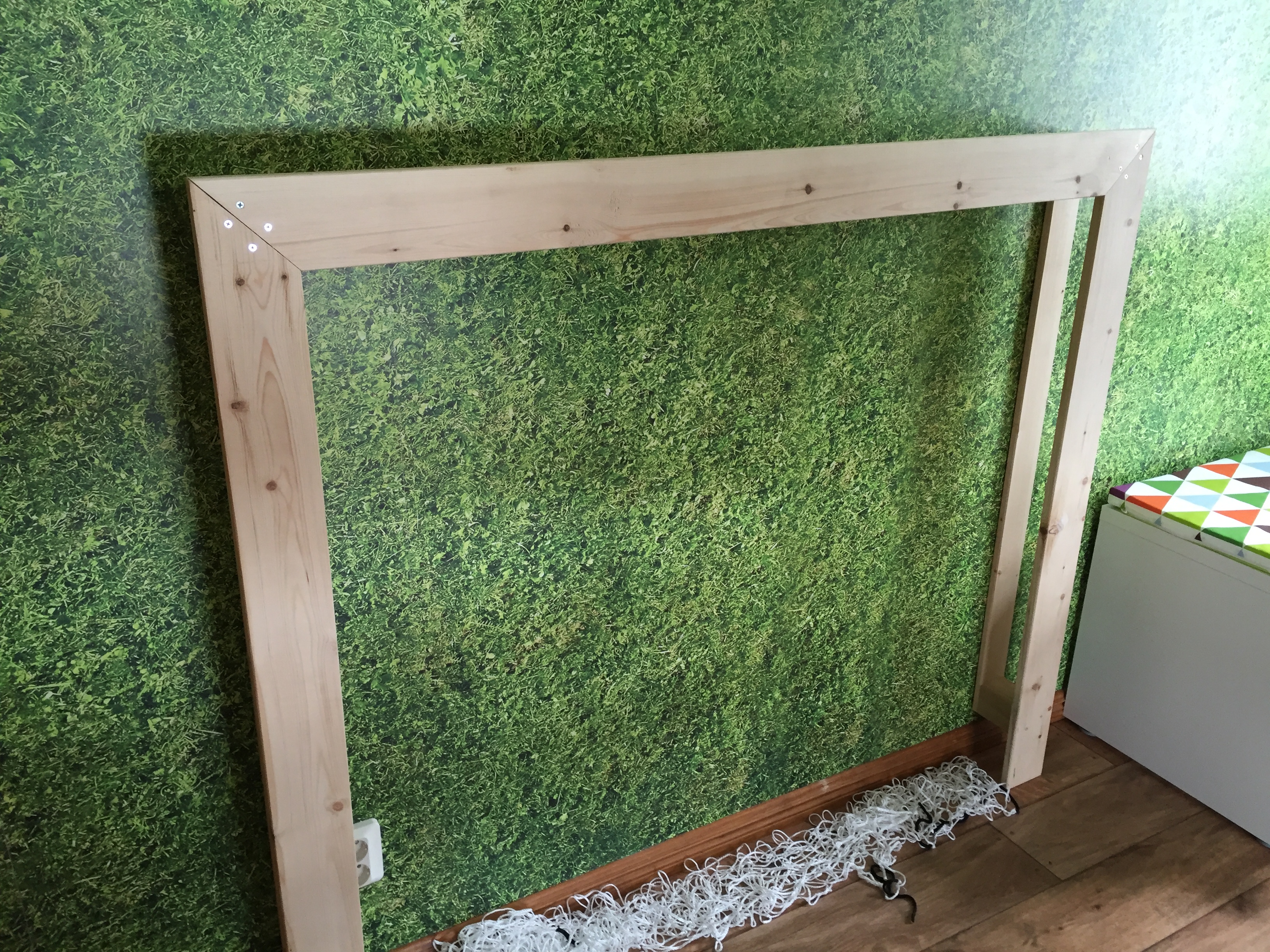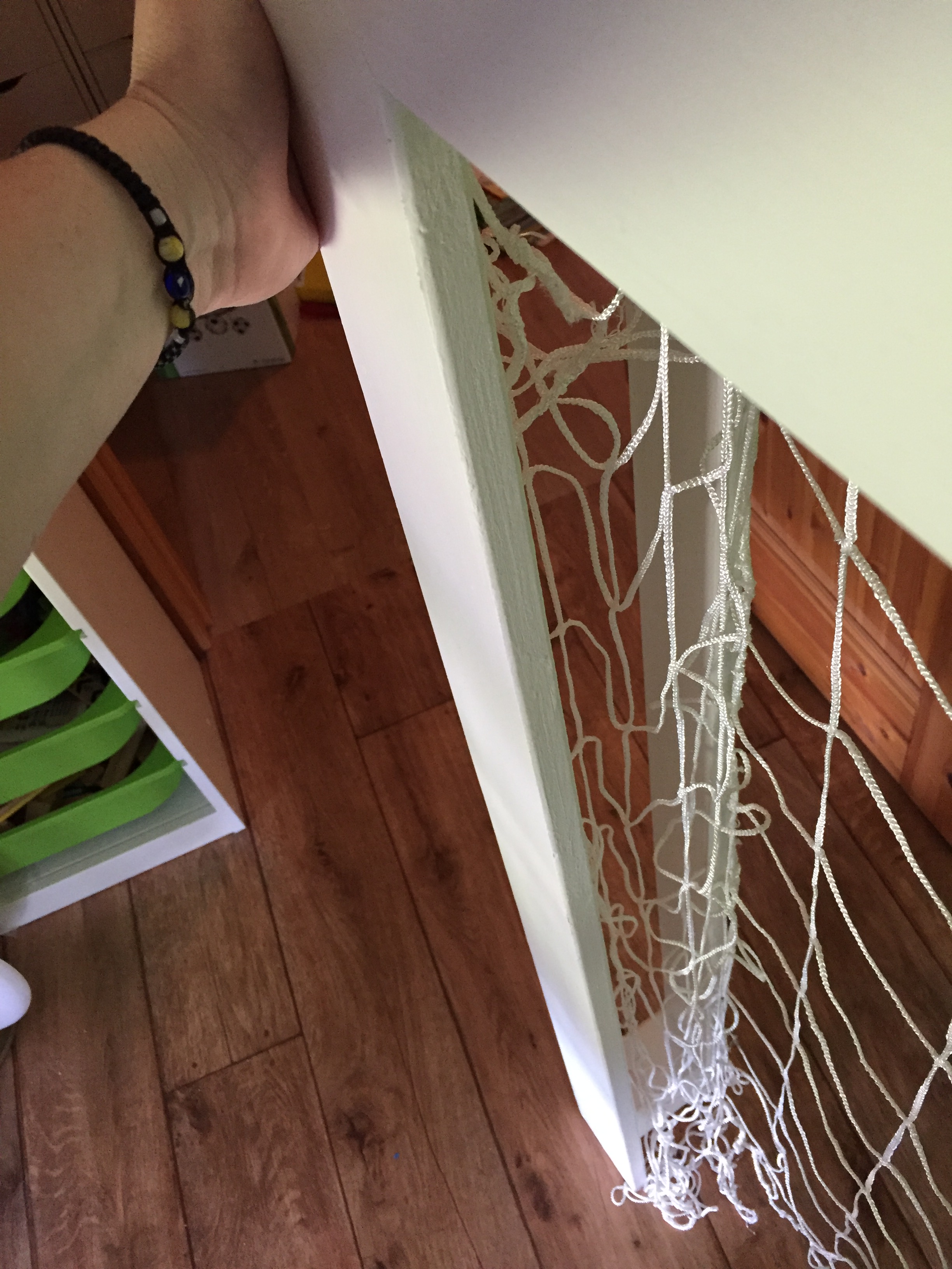ett bollnät vid sänggaveln.