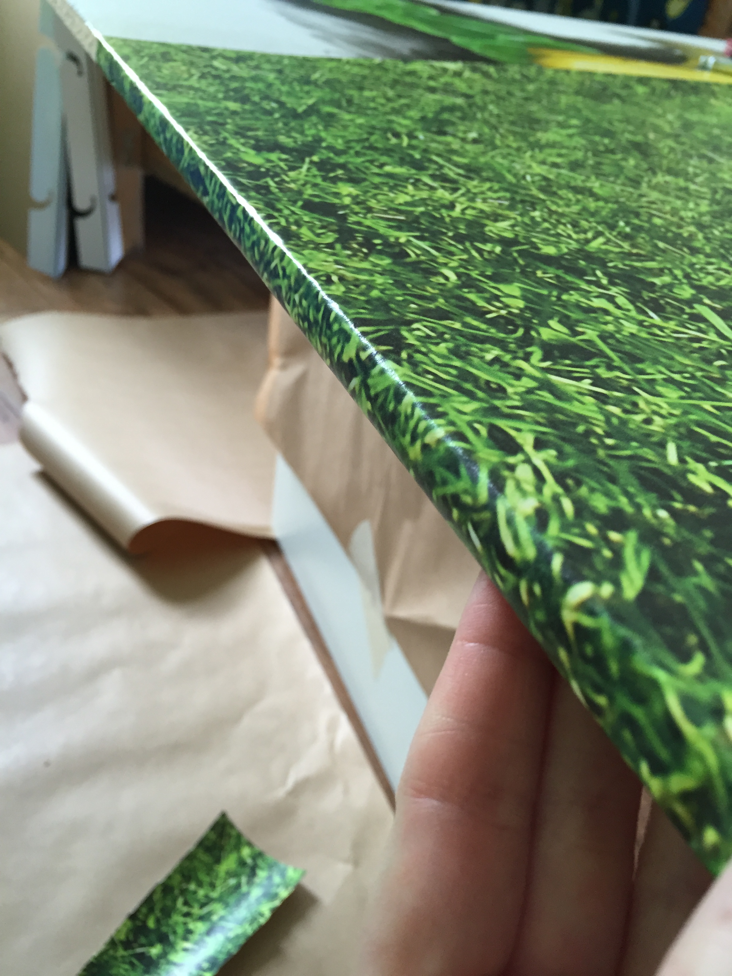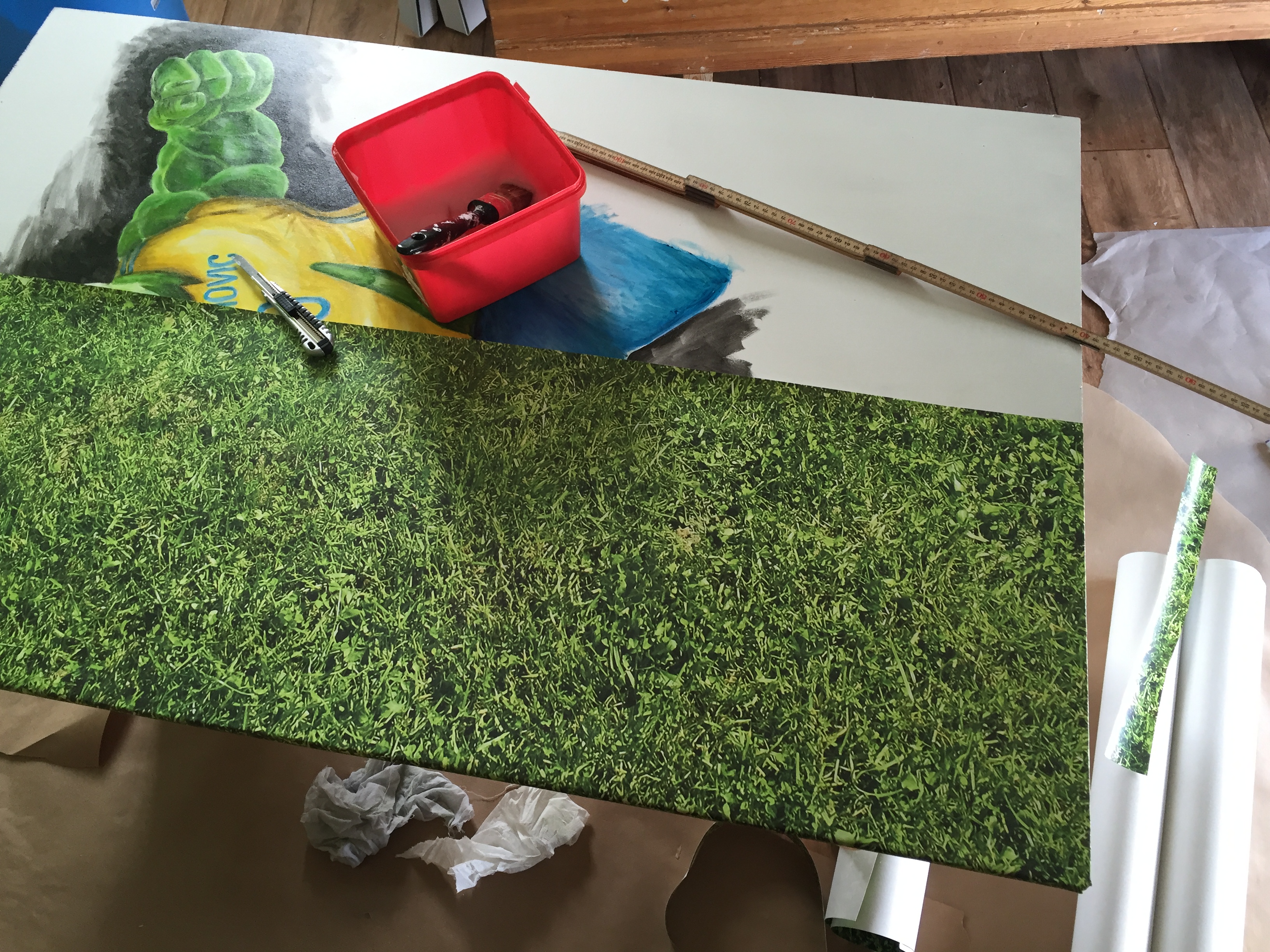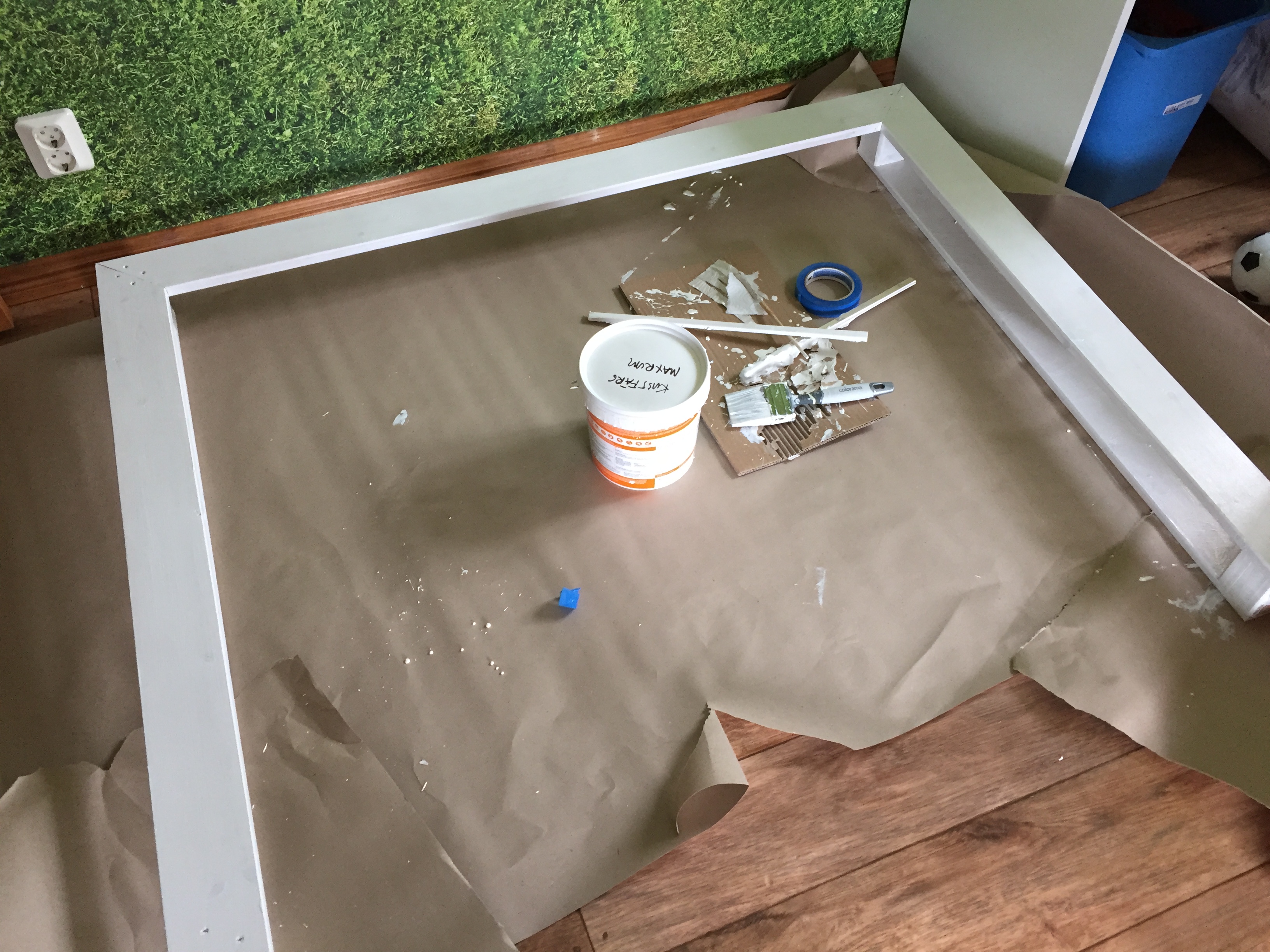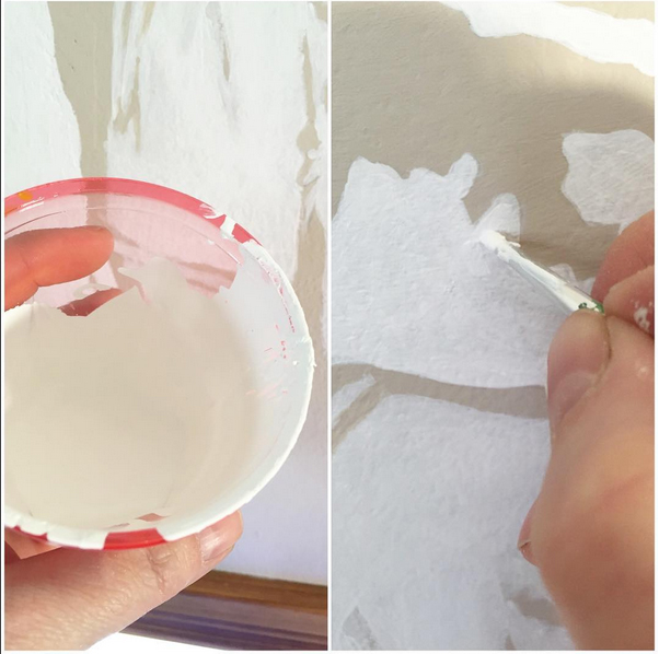 väggfärgen och limmade upp